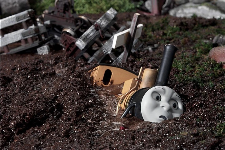 Duncan empuja los furgones y, mientras desvía algunos vacíos en la pendiente, enreda su acoplamiento con un furgones. El cabrestante arrastra los furgones y Duncan cuesta arriba. Rusty llega a tiempo para ver todo y no está contento de verlo, pero su maquinista le asegura que locomotoras como Duncan nunca escuchan consejos. Duncan es demasiado pesado para el cabrestante y se rompe un acoplamiento, lo que hace que Duncan viaje cuesta abajo hacia un pantano fangoso.