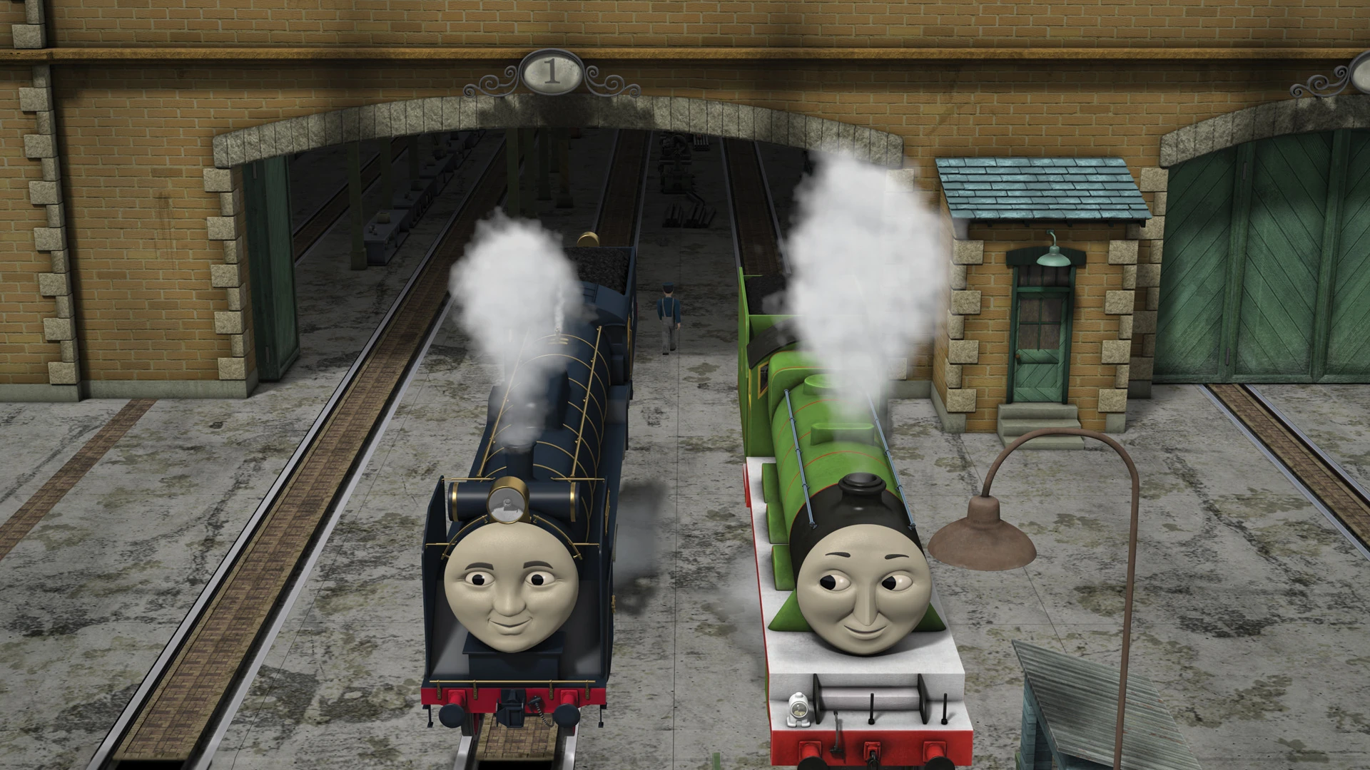 - Cuando Henry se desacopla del tren de Hiro para regresar a los cobertizos, tiene el sonido de silbato de Hiro.