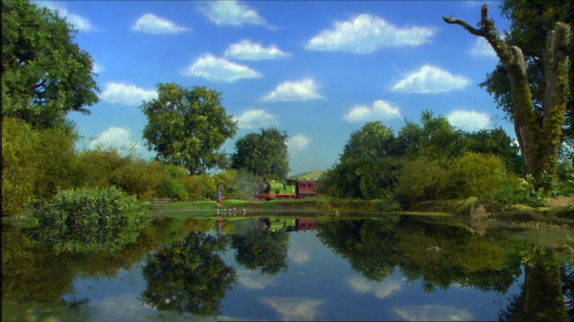 Mientras Percy hablaba con Lady Hatt en Great Waterton, pasó por el estanque de los patos en su camino. Como este lugar era uno de los lugares favoritos de Lady Hatt en la isla de Sodor, le pidió a Percy que se detuviera, e inmediatamente salió de los vagones y fue a ver a los patos nadando en el estanque.
