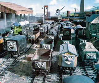 | Furgones Problemáticos se deleitan en las travesuras y cualquier motor sabio sabe que no se puede confiar en ellos. Se utilizan para el transporte de mercancías a través del Ferrocarril Noroeste y más allá, por lo que son vitales para el funcionamiento de cualquier ferrocarril. Las travesuras comunes de los camiones incluyen cantar, insultar, frenar, golpear y burlarse de las locomotoras.