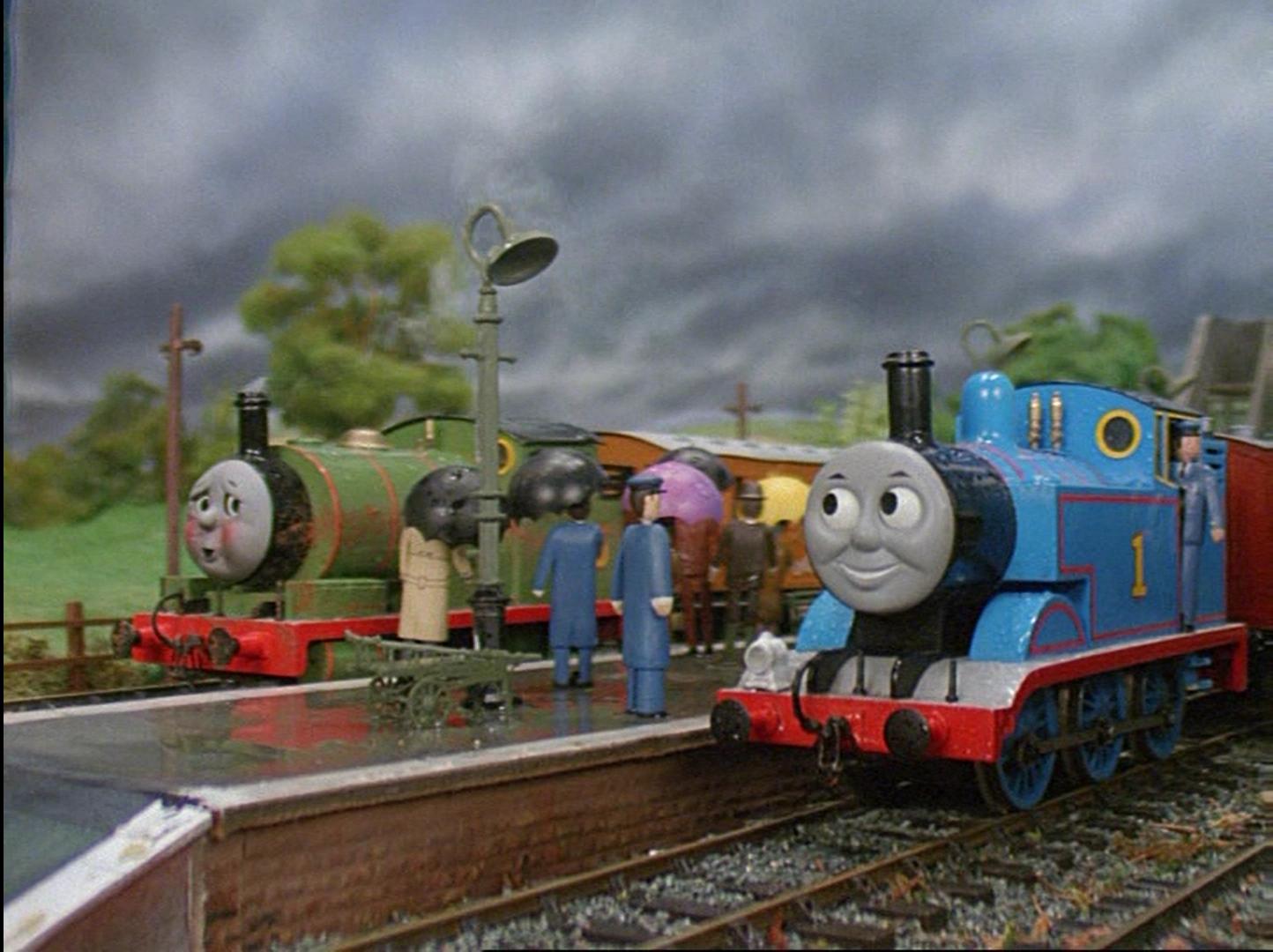 - A pesar de que el agua solo llegó al reposapiés de Percy, tiene una línea de agua en la caldera cuando se encuentra con Thomas al final del episodio.